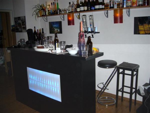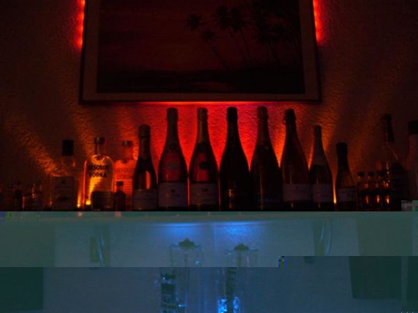 Letztens hab ich hier mal nach Beispielen für die Beleuchtung einer Bar gesucht, aber nichts wirklich passendes gefunden. Mittlerweile ist das Projekt fertiggestellt und ich will euch an dem Ergebnis mal teilhaben lassen, vielleicht kommen ja manche auf den Geschmack was ähnliches zu machen.