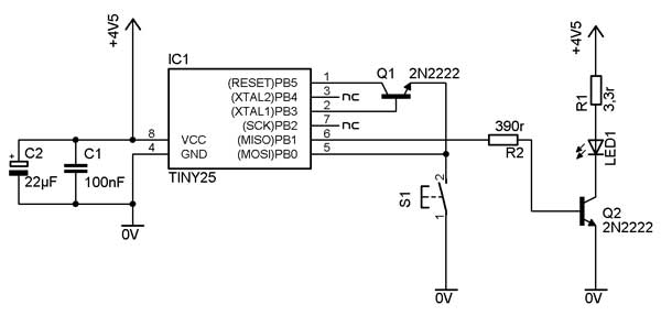 Die Schaltung hat 3 Dimm-Stufen und in Standby nimmt sie ca. 1,5µA auf.