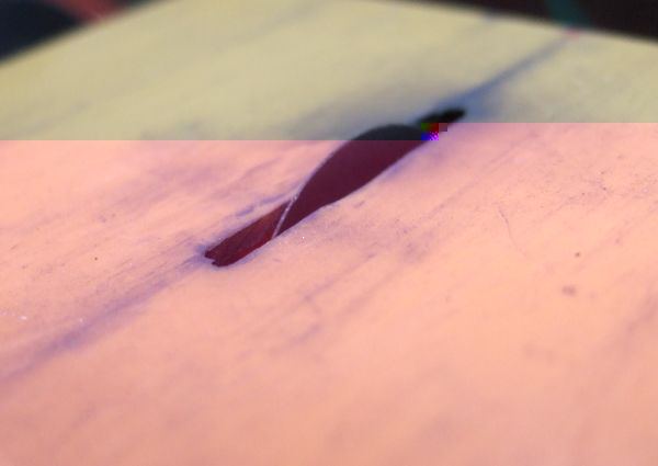 stark spiegelt, und leicht auf der Unterlage klebt.