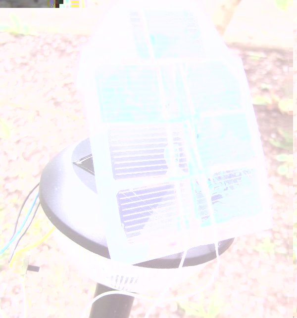 Das ganze habe ich auf eine Solarleucht geschraubt und provisorisch angeklemmt.