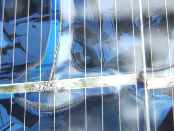 So sehen die Zellen auf der Rückseite aus wenn ein Anschlußsteg aufgeschweißt ist, und nur dann kann man