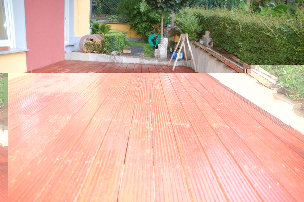 Was man natürlich auch machen könne, wäre das Plexi/Glas Sand zu strahlen & dann von der Seite zu beleuchten, dann hättest du kleine leuchtende Platten in der Terrasse.