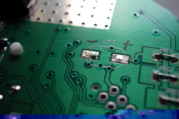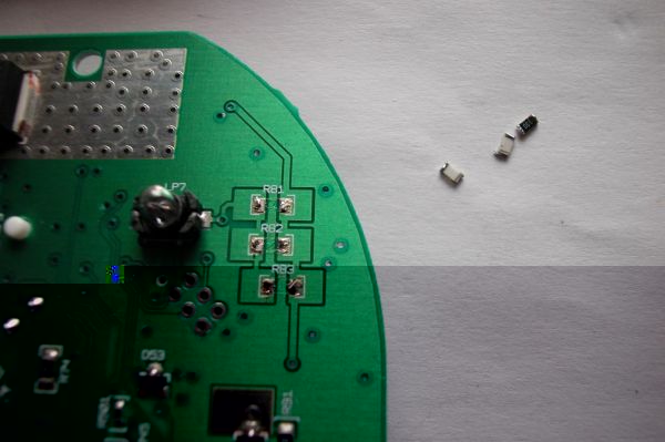 Hier kann man erkennen, dass die grünen SMDs hinter dem Dislpay schon gegen weiße getauscht wurden.