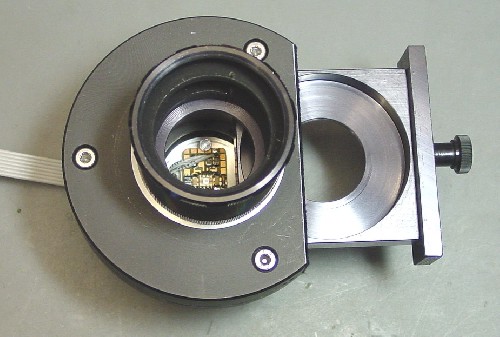 Sockel mit fertig montierter Platine und dem M42 Zwischenring, welcher dann an die Filterschublade kommt.