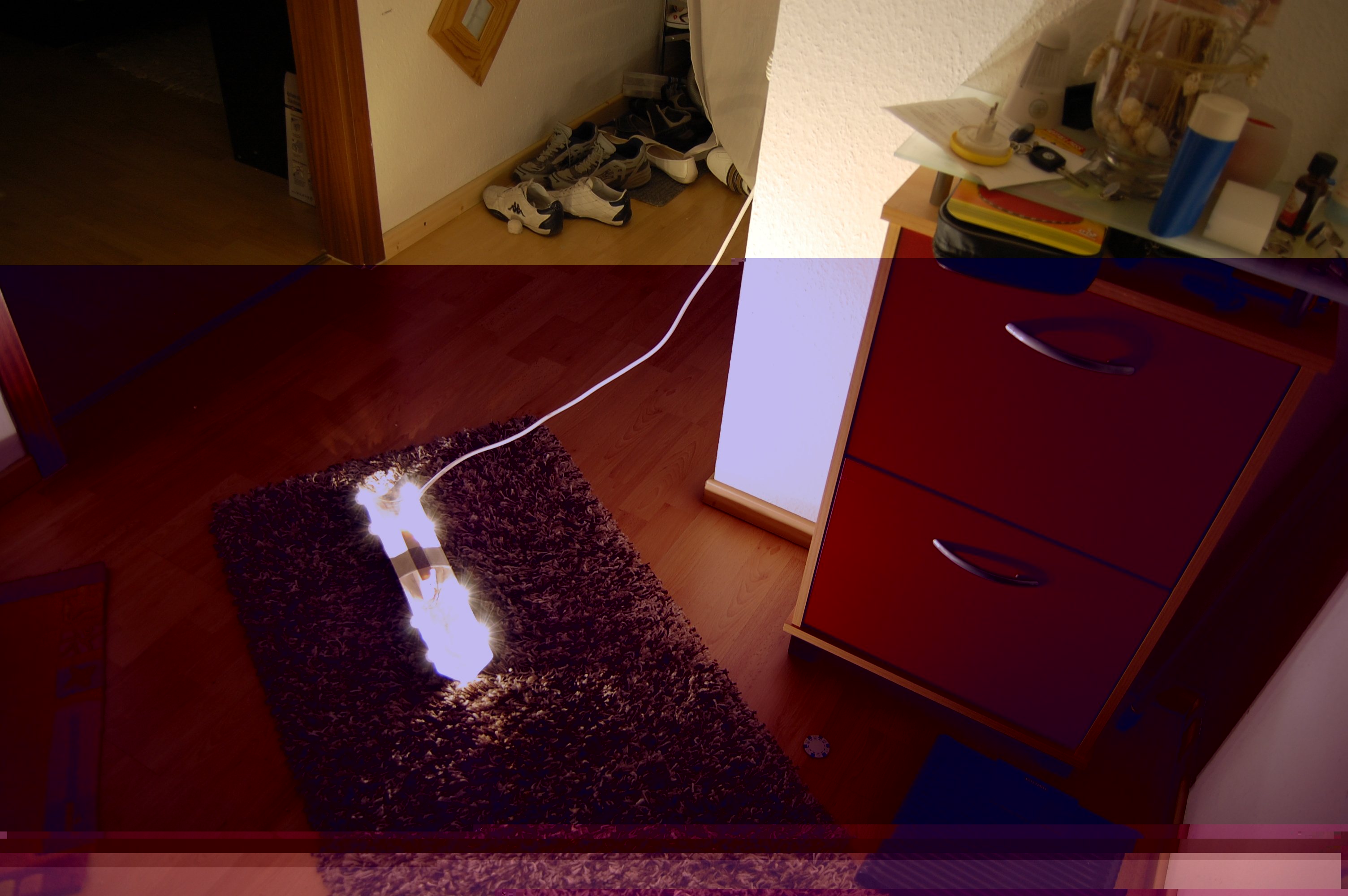 Die ersten vier Bilder wurden mit identischer Blende und Belichtungszeit gemacht (jedoch frei Hand), um ungefähr den Helligkeitunterschied beurteilen zu können. Rein subjektiv kommt es mir vor, als wenn nur ca. 25-30% Licht fehlen, bei 50% weniger Stromverbraucht (11 statt 22 Watt). Die Farbtemperatur ist deutlich kälter als auf den Fotos, wenn ich die kälteste Vorgabe meines Monitors einstelle, ist es immer noch etwas wärmer als in echt.