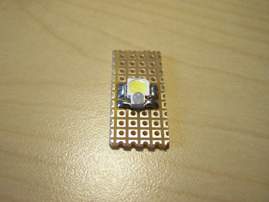 1. bei je 4 Platinen die Osram-Led entfernt, die Lötkontakte mit dem Dremel entlackt und eine weiße Samsung-Led verbaut