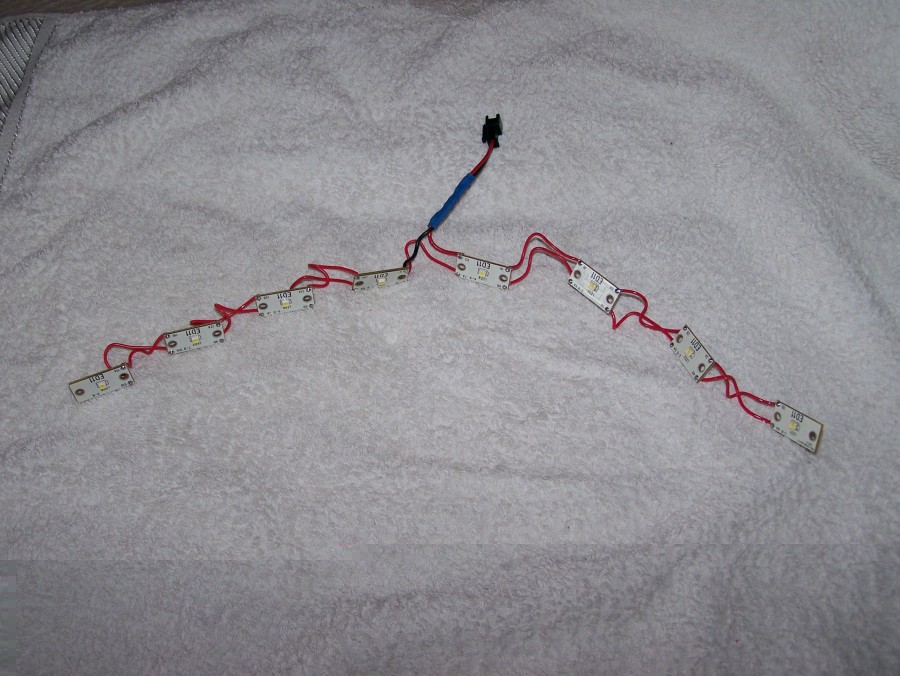 2. je 4 Platinen neu angefertigt und mit weißer Samsung-Led und orangener Osram-Power-Topled ausgestattet und von hinten mit Drähten versehen